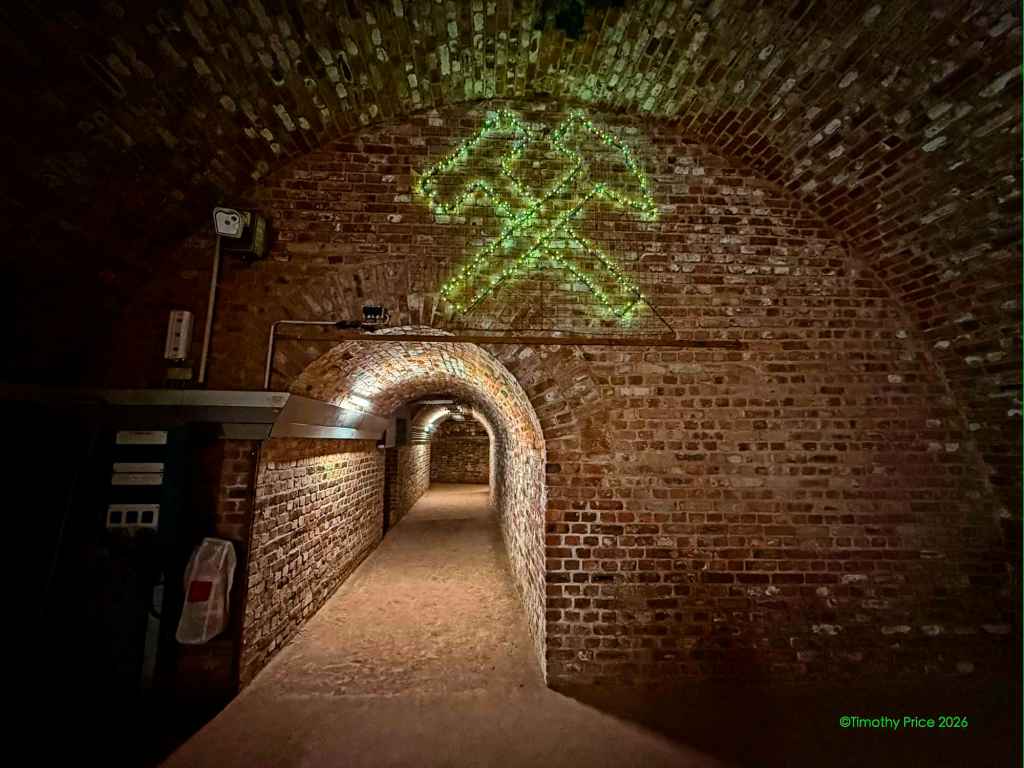 With hard hats on our heads, we descended into the sand mines. In Italy truant children were turned into donkies and sent to work in the salt mines. I wonder if truant children were sent to work in the sand mines in Homberg.