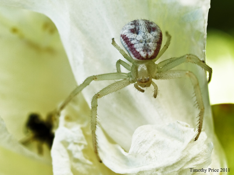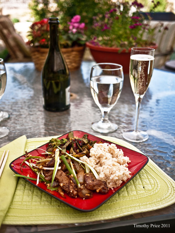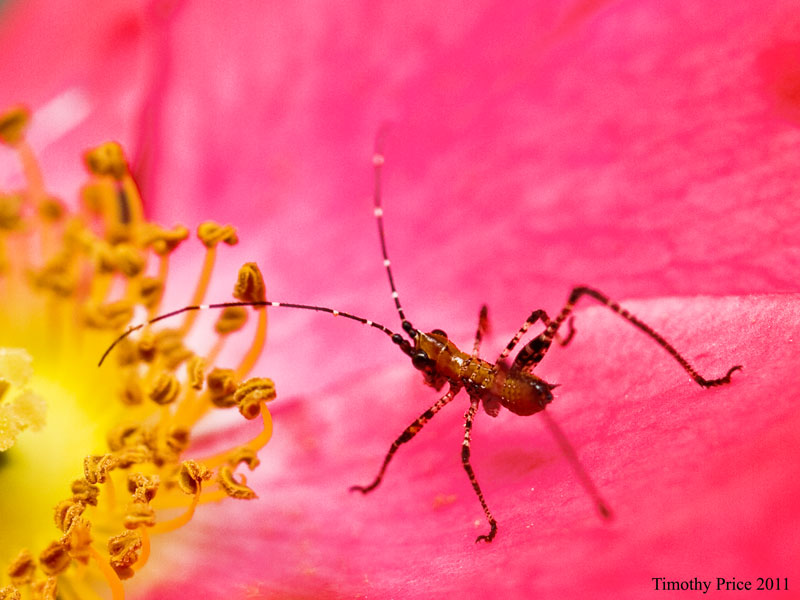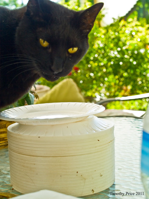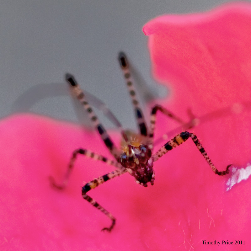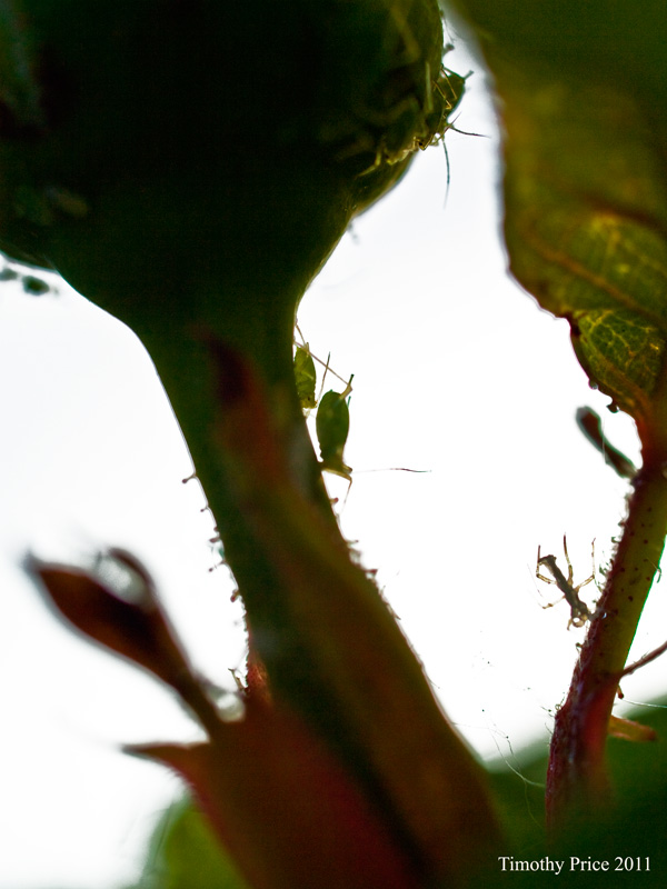 A tiny preying mantis got on my arm. It was so small I could hardly see it, and I might have squished if I hadn’t noticed it. I coaxed it onto a rose bush and it posed nicely, although it was so small I had a terrible time focusing on it. Then a fly landed next to my plate and started rubbing its front legs together like it wanted my food. The photo ended up looking more like it was praying, So I called it a praying fly.