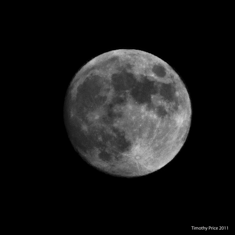I think there is a thin layer of smoke in the air that makes it impossible for me to get a really clear photo of the moon. Three different cameras and lenses all produced the same results. — a soft moon.