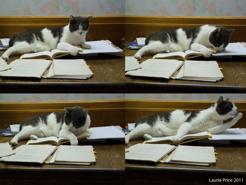 Stretch was working on math with Laurie when she got this series of him working on a problem. He wasn’t shy about showing off after he “licked” the problem. I suppose it’s the kitty equivalent of blowing the smoke of the barrel of a pistol.