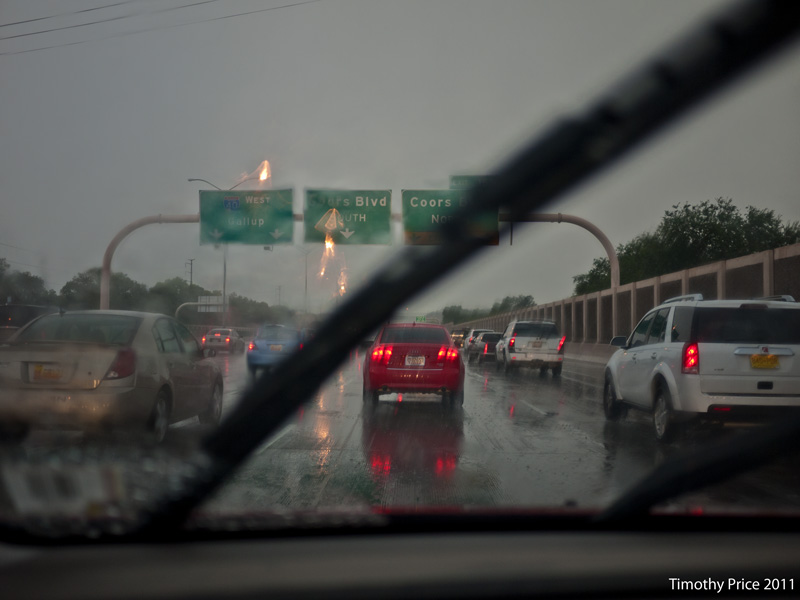 All Wet September 2, 2011 Timothy PriceLeave a comment I got off pretty late tonight to find myself driving home in a rain storm. The traffic on I-40 was very slow. It’s nice to have rain, but it does play havoc with traffic.