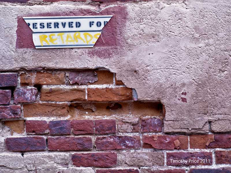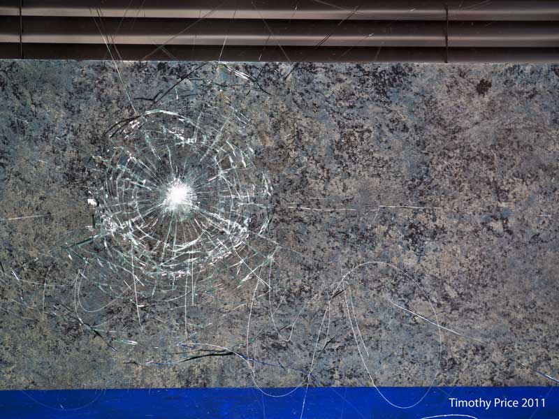I saw some interesting things in the blind alley along the side of the building when I was on the roof, so after I finished working on the air-conditioner I checked out the alley and noticed the interesting reserved sign on the wall. The cracked window is on the tailor’s shop along 3rd Street.