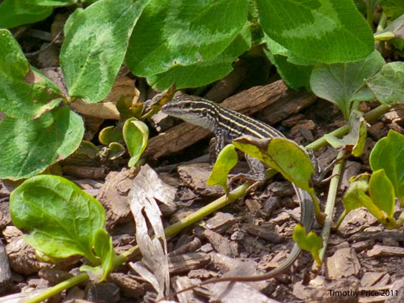 A little lizard was skitting around eating ants. It finally stopped to look at me for a moment after it took cover under the clover, and Betty Prior was poking out from under Fragrant Memory nearby.