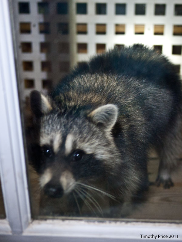 The neighbor’s horses where horsing around while I was photographing them, but when the sorrel decided to come over and check me out, the gray horse bit him. The runt coon came begging at the door, and unlike the other raccoons that always look mean, the runt has a sweet, sad look about him. He gave me a similar look back in July when his mama and siblings left him stranded on the deck https://photoofthedayetc.wordpress.com/2011/07/09/i-want-my-mama/.