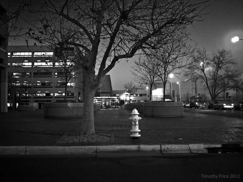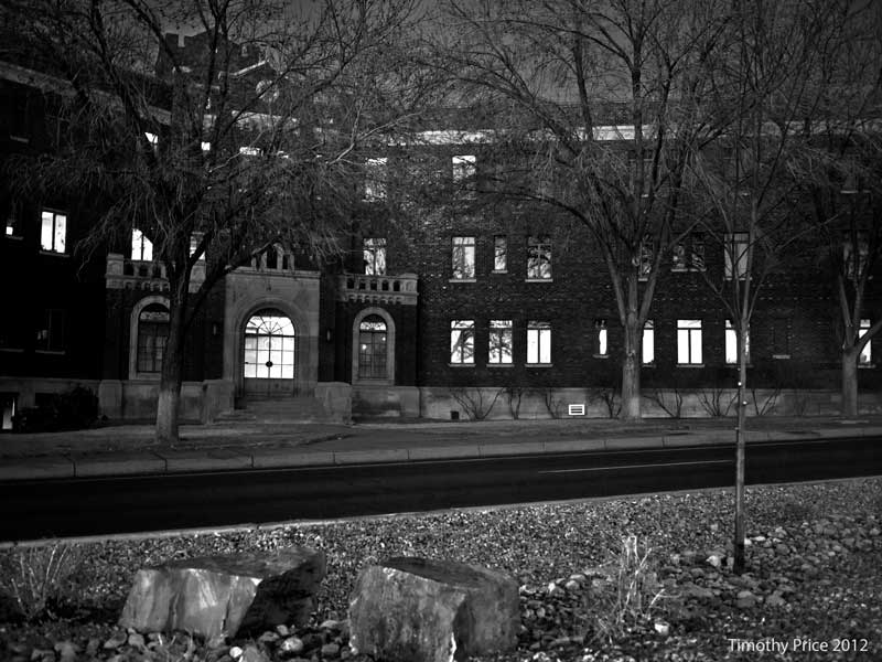 They’ve closed down several streets downtown the last few days for filming, forcing most of the traffic trying to get out of downtown onto 2nd Street. The problem is the lights are not timed to handle the extra traffic, so 2nd Street and all the side streets were jammed. While waiting to turn onto 2nd Street, I noticed the light on First Plaza was interesting. I finally got to Martin Luther King Jr. and while waiting in traffic to get on I-25, the light was nice on the old hospital building on MLK.