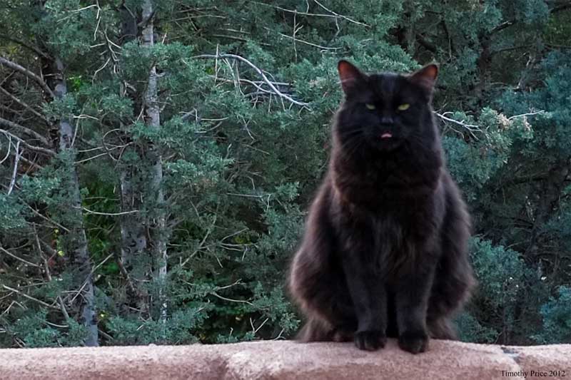 When I came back from an errand late this afternoon, Puck was laying on the wall in a really good spot that would have resulted in a great composition; but the second I pointed my camera at him he started walking down the wall away from me. I said “Puck! You rotten cat. Can’t you pose for me?” He stopped sat on the wall, looked straight at me, stuck his tongue out at me as I snapped the photo, then jumped off the wall and ran off. Really bratty.