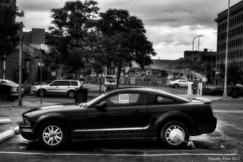 I left the office late tonight — one of the consequences of taking Thursday off last week to make a long, and productive weekend at home. When I got to my car, I noticed one of the only other cars left in the parking lot was a booted Mustang. Everyone else but me and the owner of the Mustang had the good sense to go home at a reasonable hour (good thing I pay for a parking permit).