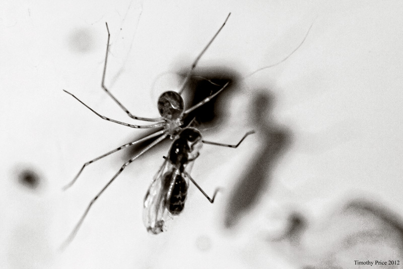 We got home really late again tonight, so I ate dinner with this Daddy Longlegs while I prepared photos. This Harvester spun its web next to my computer and had caught one of the flying ants that’s been pestering us. I would like to see the spiders catching and eating many more of those pesky little sugar ants.