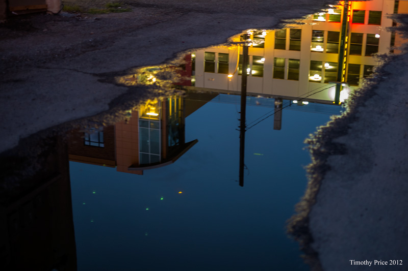 When I walked out of the office at dusk this evening, the reflections in the puddle from the afternoon thunderstorm were quite colorful. I don’t know an ascii code off the top of my head to make an upside down N, so I had to use a normal N in “Ne We I”. Sometimes you have to sacrifice the purity of a title when faced with limited time and a various technical issues.