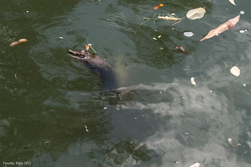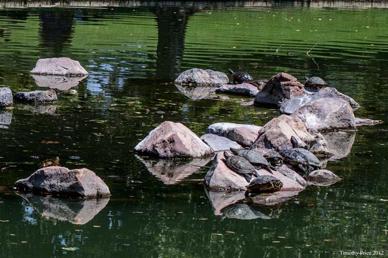 The soft shell turtle in the first photo was alternating between the back stroke and treading water before it noticed me and disappeared in the murky water of the Duck Pond at UNM. With only its head showing clearly and the rest of it fading into a blurred mass behind the reflections, it looked more like a monster than a turtle. One duck had ducklings and other turtles, mostly large, red eared sliders, where sunning themselves on the rocks in the middle of the Duck Pond. We had a busy day today that produced too many photo ops from the Mazda dealership. to Nob Hill, to UNM, its Duck Pond, Laurie’s parents house and then at home — I only posted photos from UNM and the spider/web at Laurie’s parents’ house.