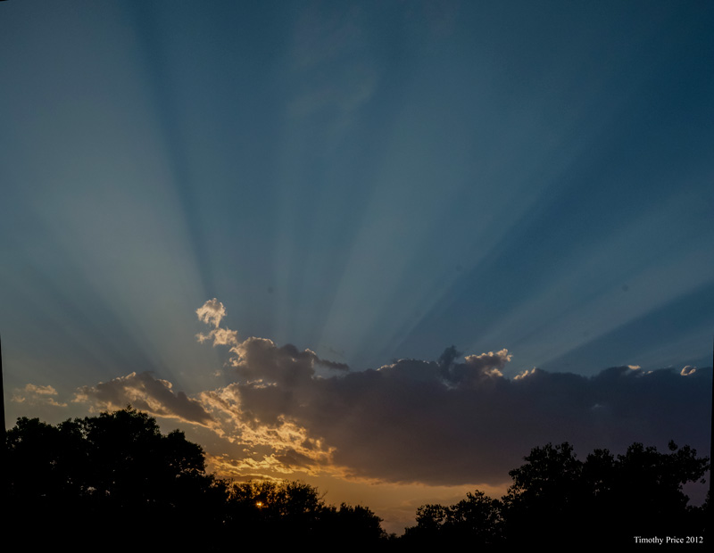 This cattle loader has been at the top of our road for as long as I can remember, so I’m sure it’s older than I am. I don’t remember ever seeing cattle loaded with it, but I do remember Doctor Salvasi running cattle on the 16 acres just south of us. I was working on the road and clearing weeds along the road when I noticed sunset with the rays of light streaming through the clouds.