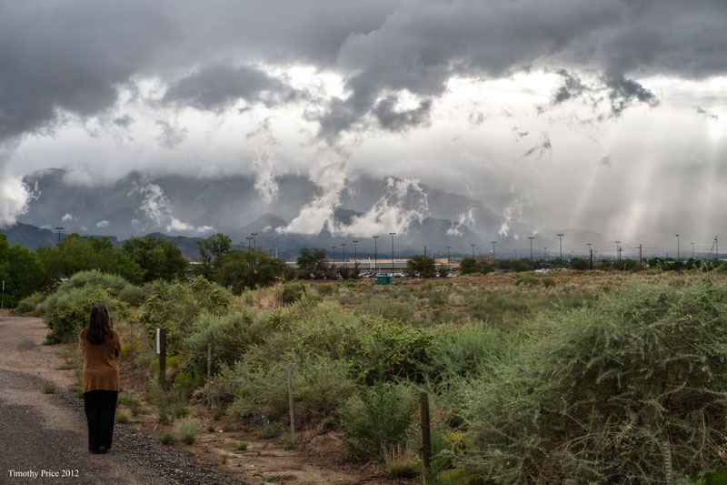 We left the house early to get through Corrales before the school zone clogged up traffic, but the clouds and the light on the Sandias caused us to take a detour before getting onto I-25 and working our way through the traffic and wrecks. Needless to say, I didn’t get to work by 9:00 this morning. Later, I drove up to FormCove in Rio Rancho to get supplies for the cabinets and countertop in the bathroom and got the photo of the Sandias in the dramatic afternoon light.