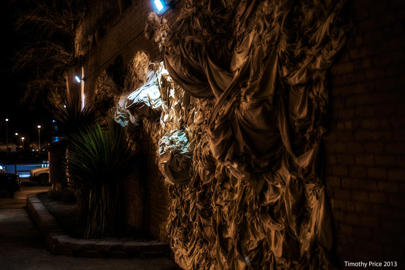 The fabric on the wall is covering the mural that Tiffany stood in front of in our downtown photo session.
