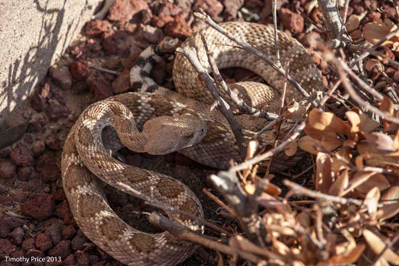 3. […] If you don’t know your snakes, you might confuse this bullsnake with a rattlesnake. The markings are similar to a rattlesnake’s, and with his defensive postures, he mimics a rattlesnake by raising his body into a striking position; he flattens his head to make it more triangular, hisses, and vibrates his tail like a rattlesnake (if there are dried leaves to vibrate his tail against, he will sound somewhat like a rattlesnake). But that’s where the similarities end. A bullsnake is slender, and has a thin, round head compared to a rattlesnake. Bullsnakes are non-venomous constrictors, with round pupils. A Western Diamondback rattlesnake the same length as this bullsnake would have a girth at least four times larger, and its head would be three or four times larger than the bullsnake’s head. Rattlesnakes have raised plates over their cat-like eyes, triangular heads, and pits on the sides of their faces (you can see a Western Diamondback rattlesnake in my blog from July 2, 2013). […]