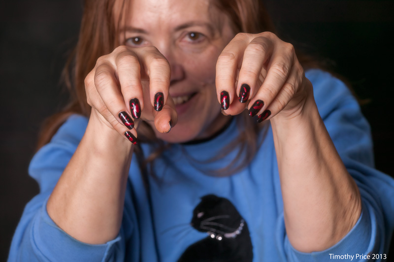 Fantastic nails, perfectly modeled for great photos. Susan and I enjoyed the afternoon and evening with you so much: the delicious meal that introduced me to posole, the fruit and the BEST CHOCOLATE IN THE WORLD. It was special to get to meet Jim and Ann and learn Ann was interested in the same game as we were and giving us a running account of what was happening 550 miles away.