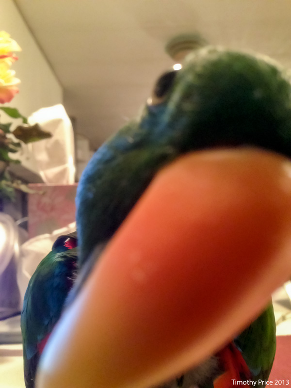 Animals / Art / Birds / Cats / Eclectus Parrot / Light / Lighting / Photography / Rosencrantz iPhone Animals November 7, 2013 Timothy Price5 Comments Often, when the kitties and birds are being cute, I pull out a camera and they cease being cute. But when I pulled out the iPhone (not the usual camera) Rosencrantz and René just stuck their faces in it. Share this: Click to share on X (Opens in new window) X Click to share on Facebook (Opens in new window) Facebook Like Loading...