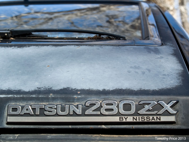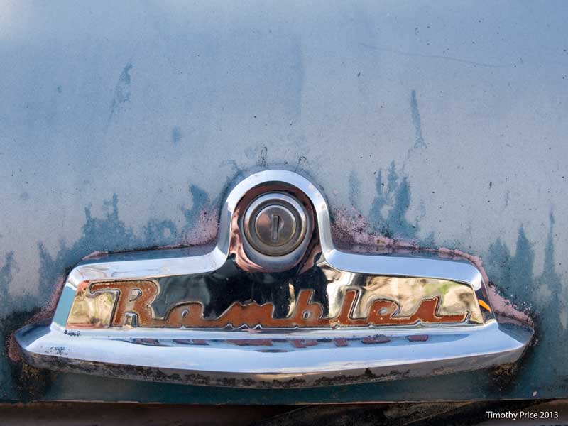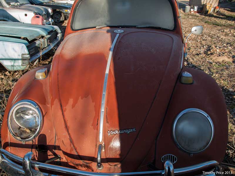 The blogger one man and his mustang – ’66 restoration project mentioned that he had the first frost last night, which prompted me to comment that we had been getting frost almost every night since the 3rd week in September. I also mentioned that we have several project cars. He replied that he would like to see photos of our project cars. I remembered I had done some on a frosty morning about 3 years ago, but when I found them, all I got of nearly complete cars in the frost were front views of the ’66 VW and the 1980 280 ZX (Tristan and David have the 280 ZX pretty well restored now). I only got parts of the ’76 Sun Bug and the 1960 Rambler in the frosty morning shoot, so the photo with Tiffany leaning on the hood of the Sun Bug shows the best shot I have of back of the Rambler behind her, besides the closeup of the trunk handle in the lead photo. The only photo of the Sun Bug in toto that I could find is one done by Susan Graham when we were having the houses torn down, that she has on her blog for her Photography Master Cup Nominations on February 19th of this year.