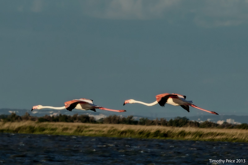 Now that we are seeing more Sandhill Cranes, I’m noticing the similarities between the cranes and the wild Flamingos we saw along the Route de la Mer that runs to the Mediterranean Sea on the Rhône delta in May. After looking at the area on Google Maps, it looks like the areas the Flamingos are wading in and flying over are normally dry. It was an unusually wet spring for Provence this year.