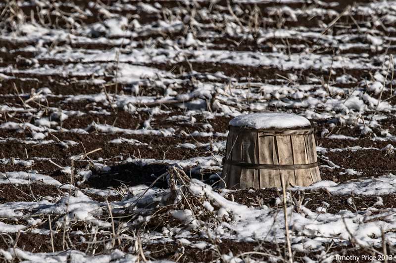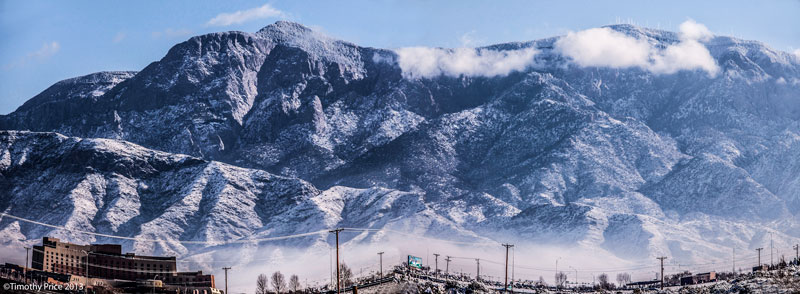 The snowed covered, western face of the Sandias looked rugged and chiseled in the early morning light after the storm. A lone basket in a spent field looked kind of sad abandoned and snow covered.