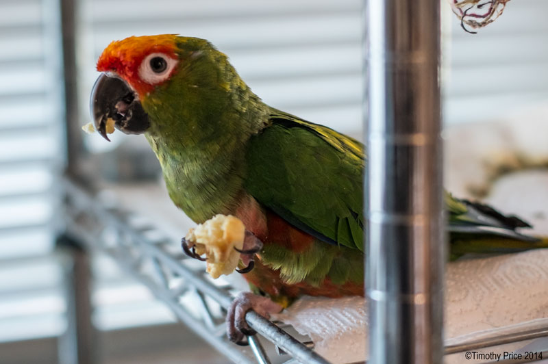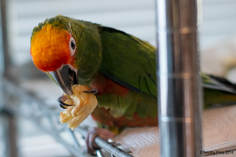 Waffle Time For Beaker (WTFB). While I was heating up a waffle in the toaster oven, Beaker stood on the edge of his shelf impatiently watching the waffle through the glass door on the oven. When the waffle was done, Beaker tore off a piece and ate it on the edge of his shelf not bothering to take it to his food dish like he usually does. Even though he loves waffles, he will not eat them cold. They either need to be straight off the waffle iron, or toasted.