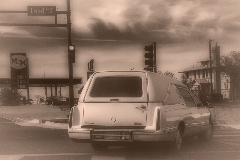 • I started with one of the vintage B&W settings in OnOne software, and then I increased the cyan and blue to darken the sky, decreased the red to make the red-light glow, and increased the white bring out the highlights.
