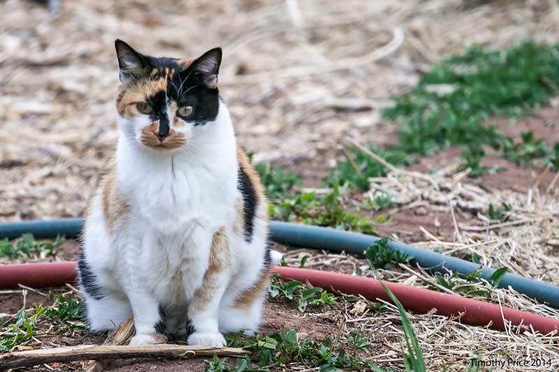 After getting “logged in” the other day, Mama Max got stumped today. Guildenstern is feeling better as you can see by his kingly pose, and Diné was looking at him like “Who do you think you are?” Rosencrantz was hacking up a hairball a few yards to the east of Diné when I did these shots. Rosencrantz is quite a hacker when it comes to producing projectile hairballs, but I figured I’d spare you the action.