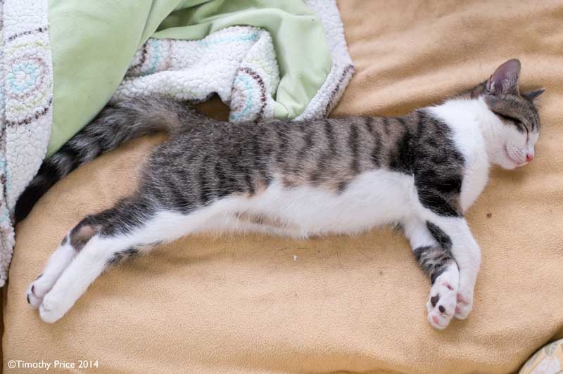 Our friends across the valley have a cat named Baggins. When Baggins was about the size of Spunky, he snuck into the bathroom, yanked on and managed to pull down the shower curtain on my friend’s husband. Baggins was known as “The Terrorist” after that.