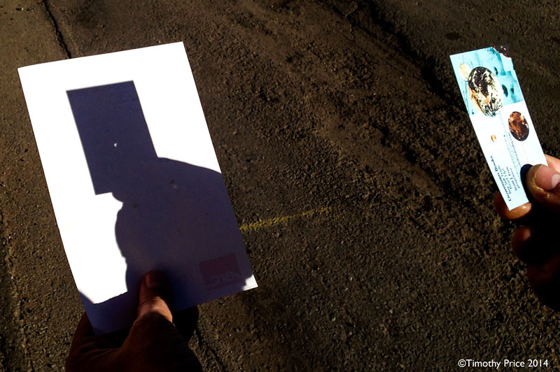 Spunk got hold of a roll of paper towels and proceeded to create kitty art with it — a combination of performance art and “realtime” sculpture. Tristan called in the afternoon and asked if I was going to photograph the partial eclipse of the sun. I didn’t have neutral density filters with me, so I poked a pinhole in a business card and had Bruce focus the eclipse on a sheet of paper while I photographed it (last two photos). I used neutral density filters to photograph the full eclipse of the sun in May 2012 and the Transit of Venus in June 2012.