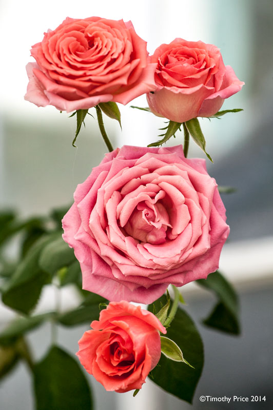 As this America Rose continues to fade to pink, the other three buds finally bloomed, as it begins it 4th week of blooming since I first photographed it: http://photoofthedayetc.com/2014/10/25/fade-to-pink/
