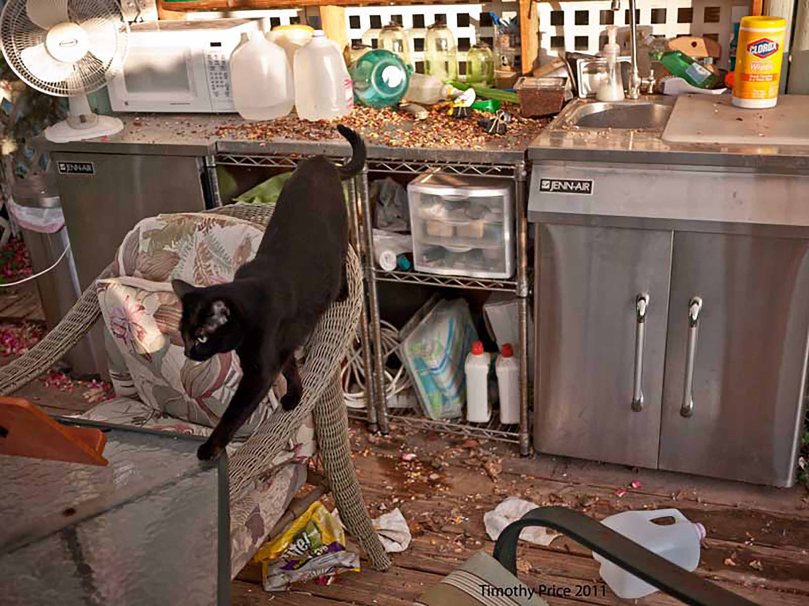 Lola helping me with cleanup after the raccoons ransacked our outdoor kitchen in 2011.