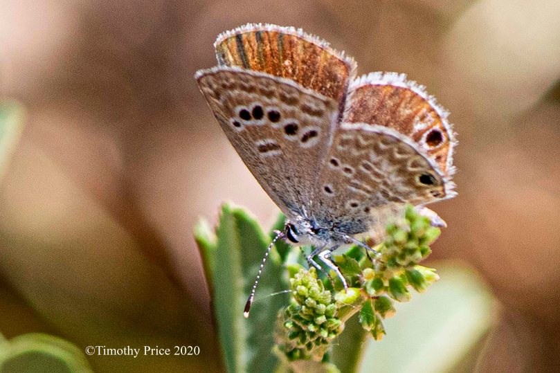 Reakirt’s Blue (Echinargus isola) is a tiny butterfly with a wingspan of only 3/4 of an inch (19mm). This one distracted me while I was walking in the bosque this morning.