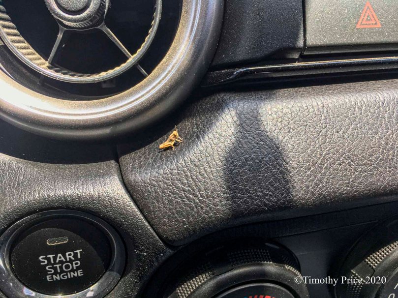Ha! I feel so sorry for them, I’ve had that happen too, they scurry up behind the windshield wiper when you stop for a light. They hold on for dear life.