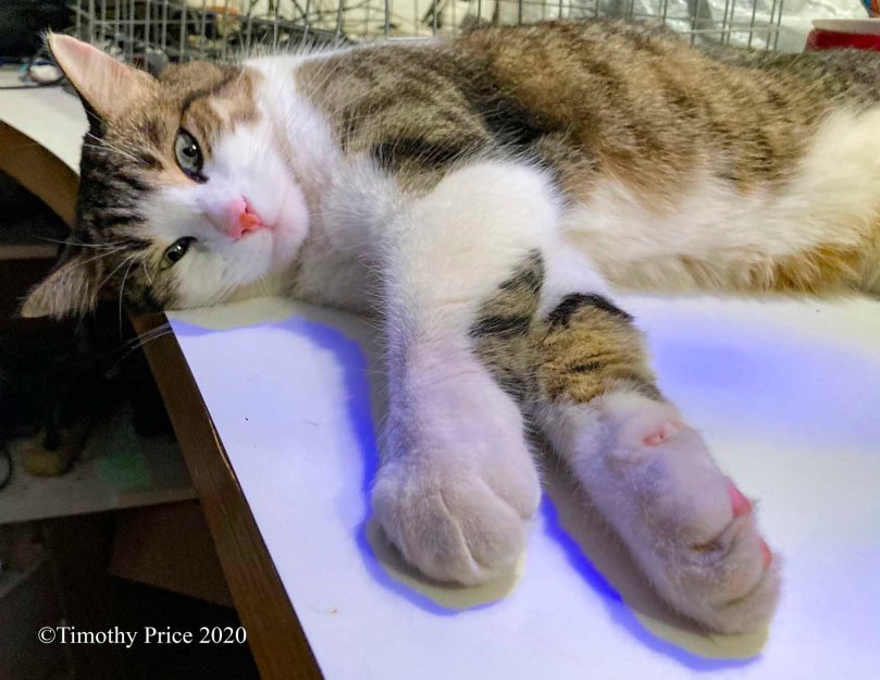 My Laurie said that blue aura will wear off. His quantum state is readjusting back to normal. She said since you guys live in NM, don’t be surprised if Spunk was beamed away by ETs in search of intelligent life. Spunk, of course, was giving his report on how he has fooled Tim and Laurie Price to wait on him every waking moment, even when Mrs. Price is teaching class.