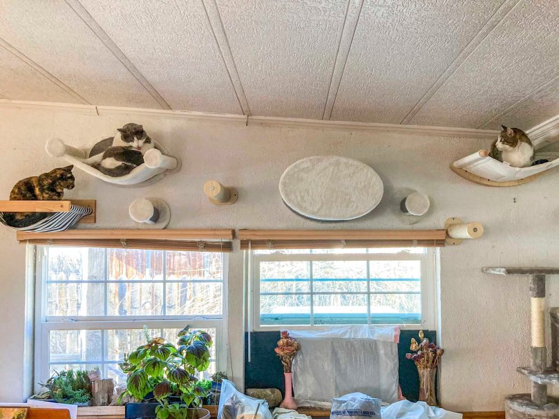 I got the new hammocks and a hide box on the wall above the windows for the kitties.