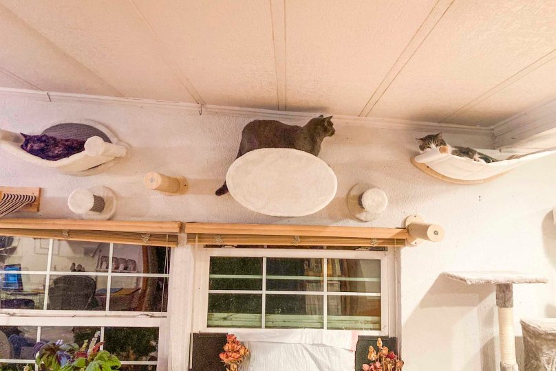 I imagine it’s nice a warm up near the ceiling too! So happy to see they love the new arrangement!