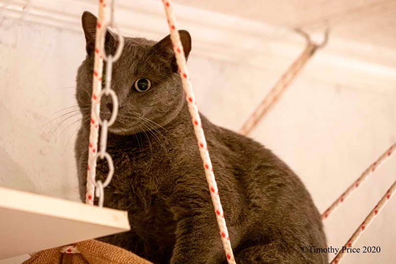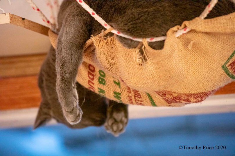 • They love their high places. I replaced one of the burlap hammocks with a commercial hammock, and I’m going to replace the one Silver is in soon, also. Thanks, Lavinia.