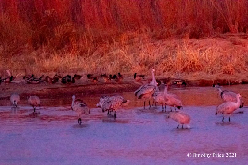 Cranes, ducks, and geese enjoying the glow.