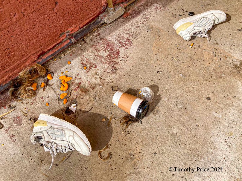 Cheetos, hair clippings, coffee cup, ciggy butt, slurpee lid and a decent pair of sneakers. And none of them will talk. Guess we need CSI. The moon and Owl kinda sets the tone for a mystery.