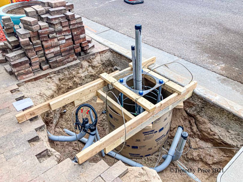 Sono tube in the ground with a lot of conduit for wiring.