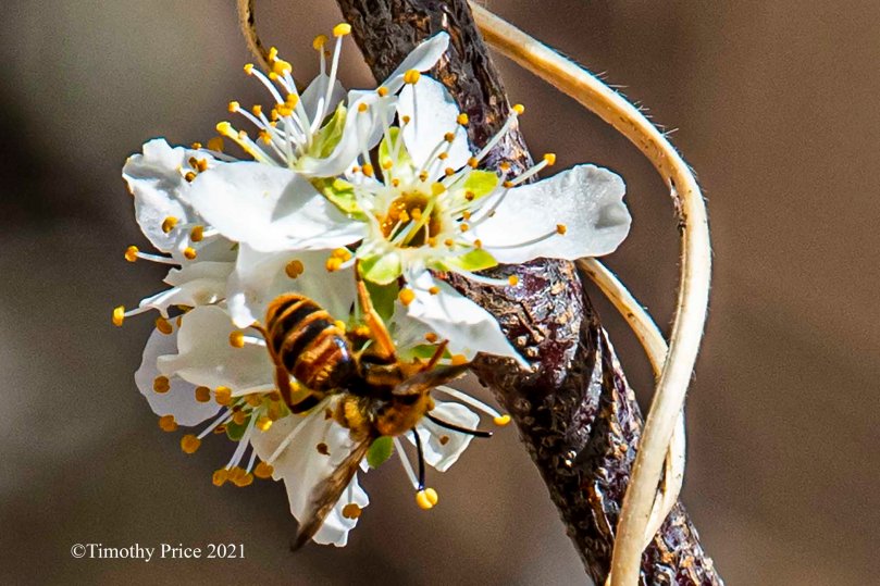 Bees, Blossom, Tulip March 20, 2021March 20, 2021 Timothy Price42 Comments A native bee that rarely lands. This is a tiny native bee on a plum blossom. Our red tulips are blooming.