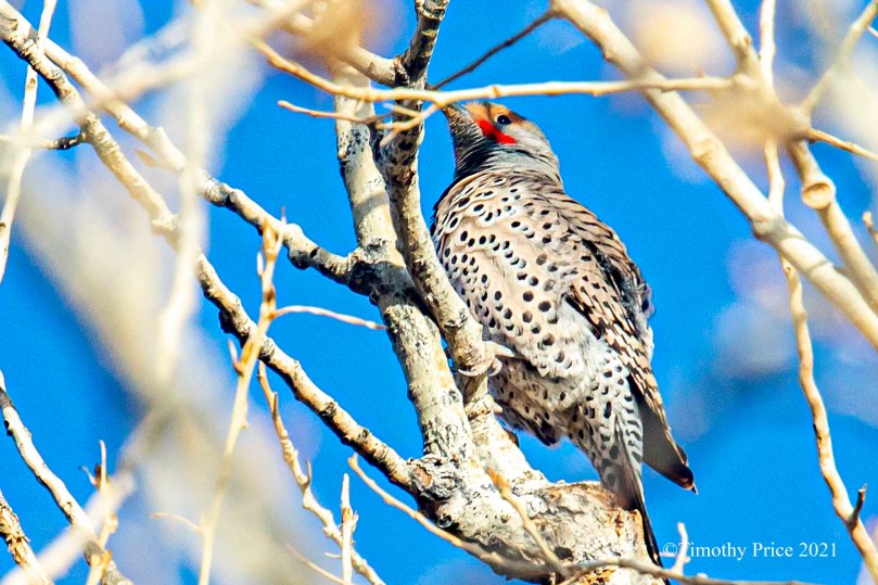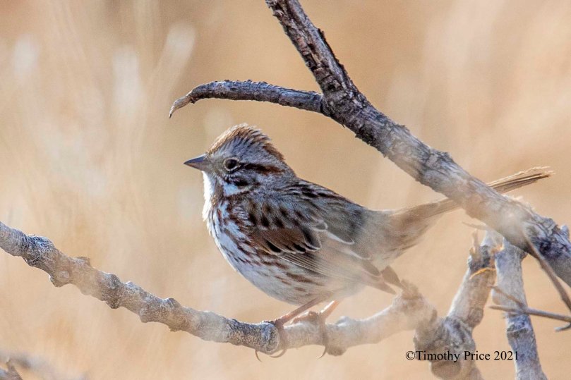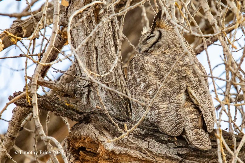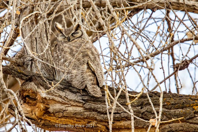 After spending five hours dismantling desks, tables, and chairs and moving them to our new office building, I went on a walk to check on Nora Owl. On the way, I saw sparrows, a muskrat, an echelon of cranes, a cinnamon duck. No owlets popped their heads, up and Nora Owl gave me “mad dogs” when I called to see if any owlets were around. One good sign that the owlets might have hatched is Osric Owl was watching over Nora Owl from a nearby cottonwood. On the way back I saw a Flicker, a squadron of crazy Cormorants, a bluebird of some type, and another sparrow feeding on buds in Marina’s pear tree. The clouds were beautiful in the low sunlight about 30 minutes before sunset.