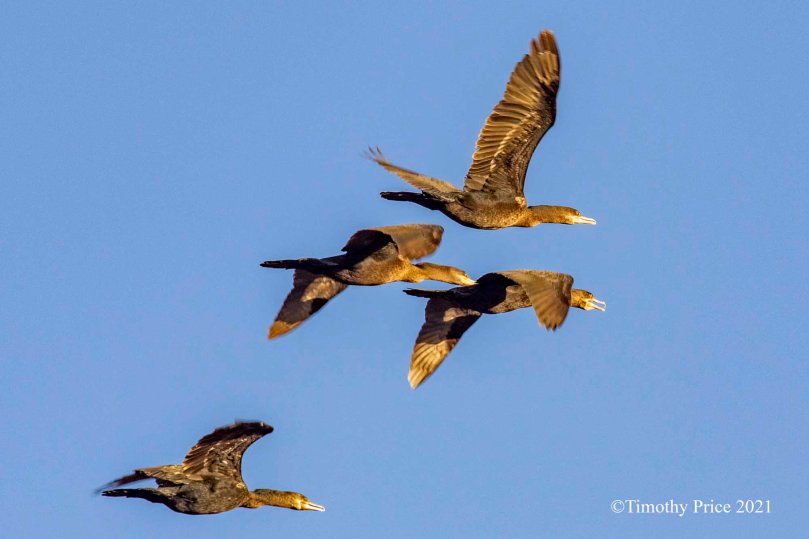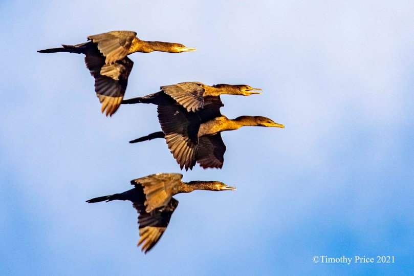 4. Love those cormorants. Are the open beaks of some indicative of in flight squawking or breath gathering? And may I ask, what is your company’s business, Tim? Love to the kitties…