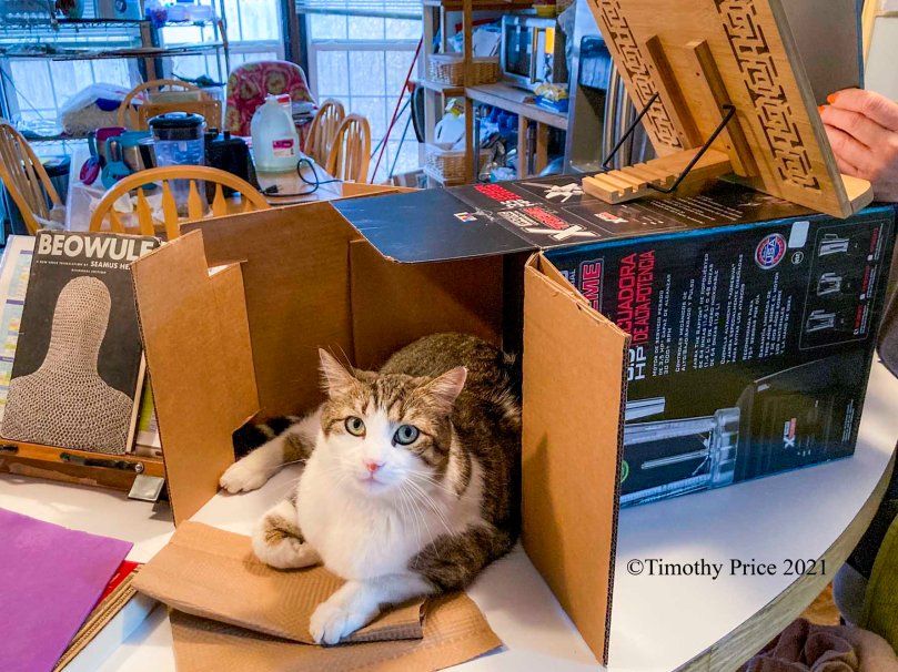 Spunk says Sasha may look like a tough Xtreme box blocker, but, as you can see, she is no longer blocking the box. I think Spunk is better at channeling his inner Beowulf. The old worn-out blender is on the table in the background.