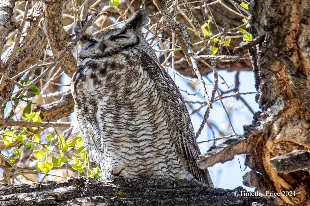 Mama Owl and Daddy Owl in a cottonwood in the bosque looking for Junior’s dinner.