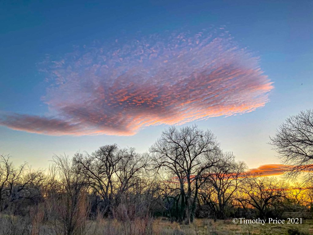 Cool effect with the light and the washboard clouds – almost looks like a pink swarm.