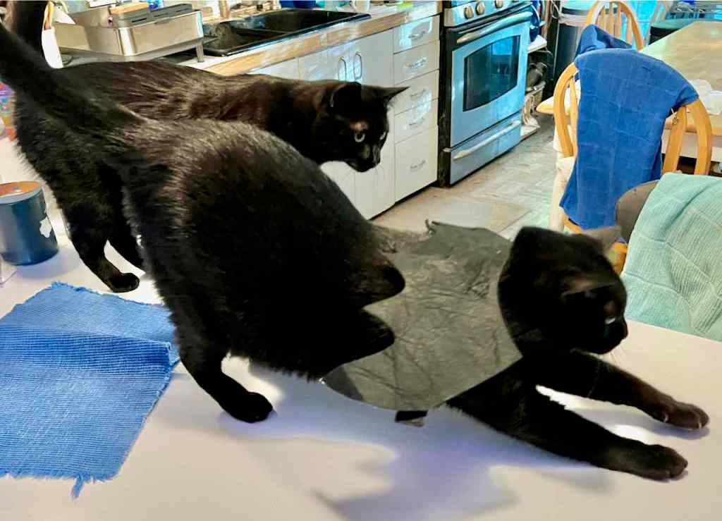 All the cats got to try on the bat wings. Loki in photos 12 and 13 was the best batwing model. Glenda (3rd photo) and Gwendolyn (last photo) were pretty good, also. Black cats know they look good in bat wings. Spunk, on the other hand, told me exactly what he thought about wearing bat wings after I took them off him (7th photo).