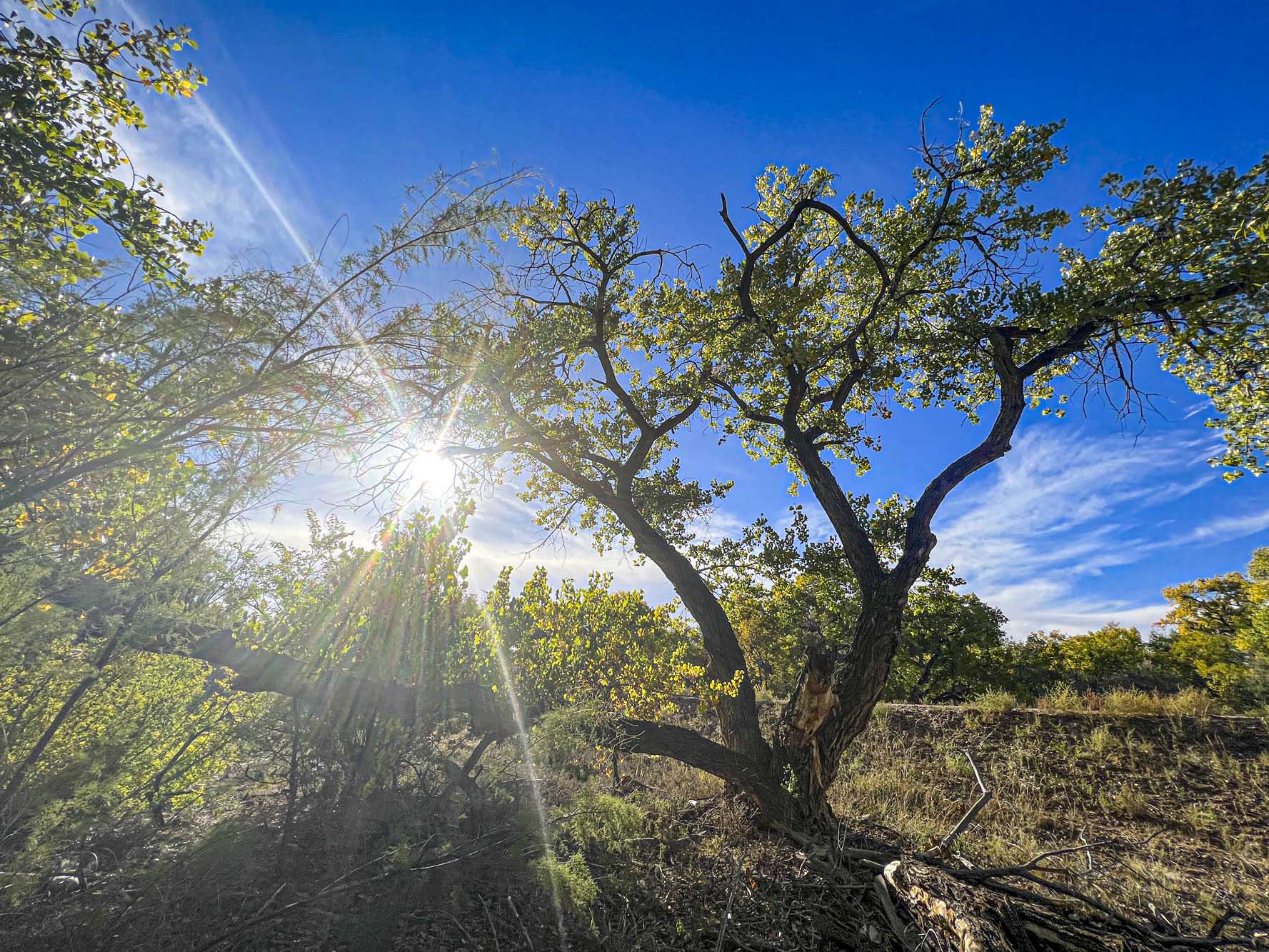 Cindy Georgakas of Unique Times was smitten by Holly’s Tangle Heart Tree. After I gave her the history of the trees, she wants a tree, but she wanted a heart in her tree similar to the Tangle Heart Tree if possible. The Tangle Heart Tree is unique, but I found what I think is the perfect tree for Cindy. Not only does it have many of its branches making multiple heart shapes, it has a figure of a saint praying where a large branch broke off many years ago. It’s also multi-dimensional, varies from classic cottonwood to, strangely shaped cottonwood depending on which side of the tree you are on.