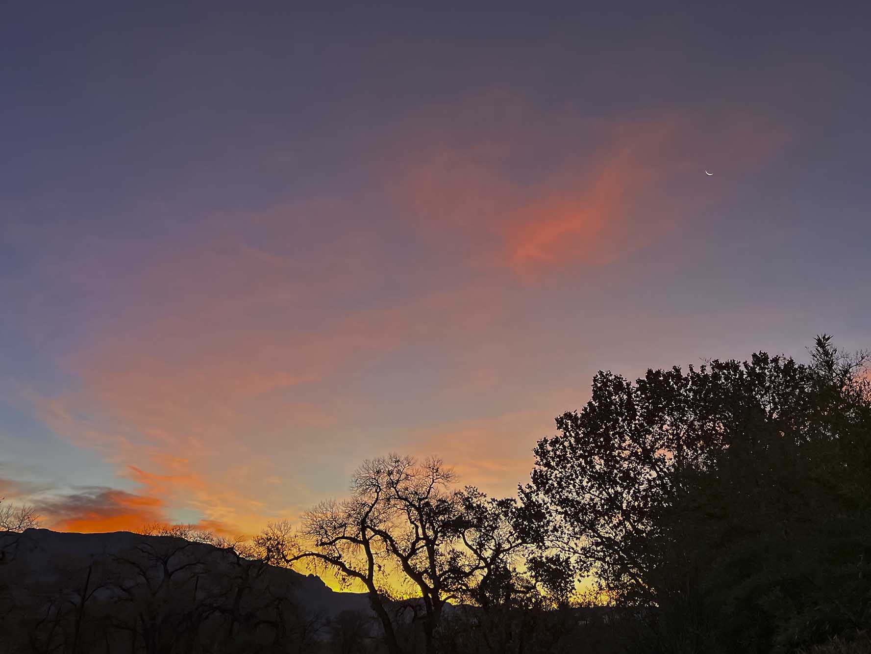 As we began the final month in the year of our Lord 2021, a sliver moon called at dawn. I answered with my iPhone and we had a rather colorful conversation before sunrise.