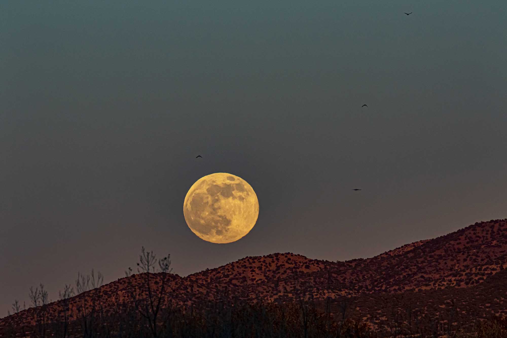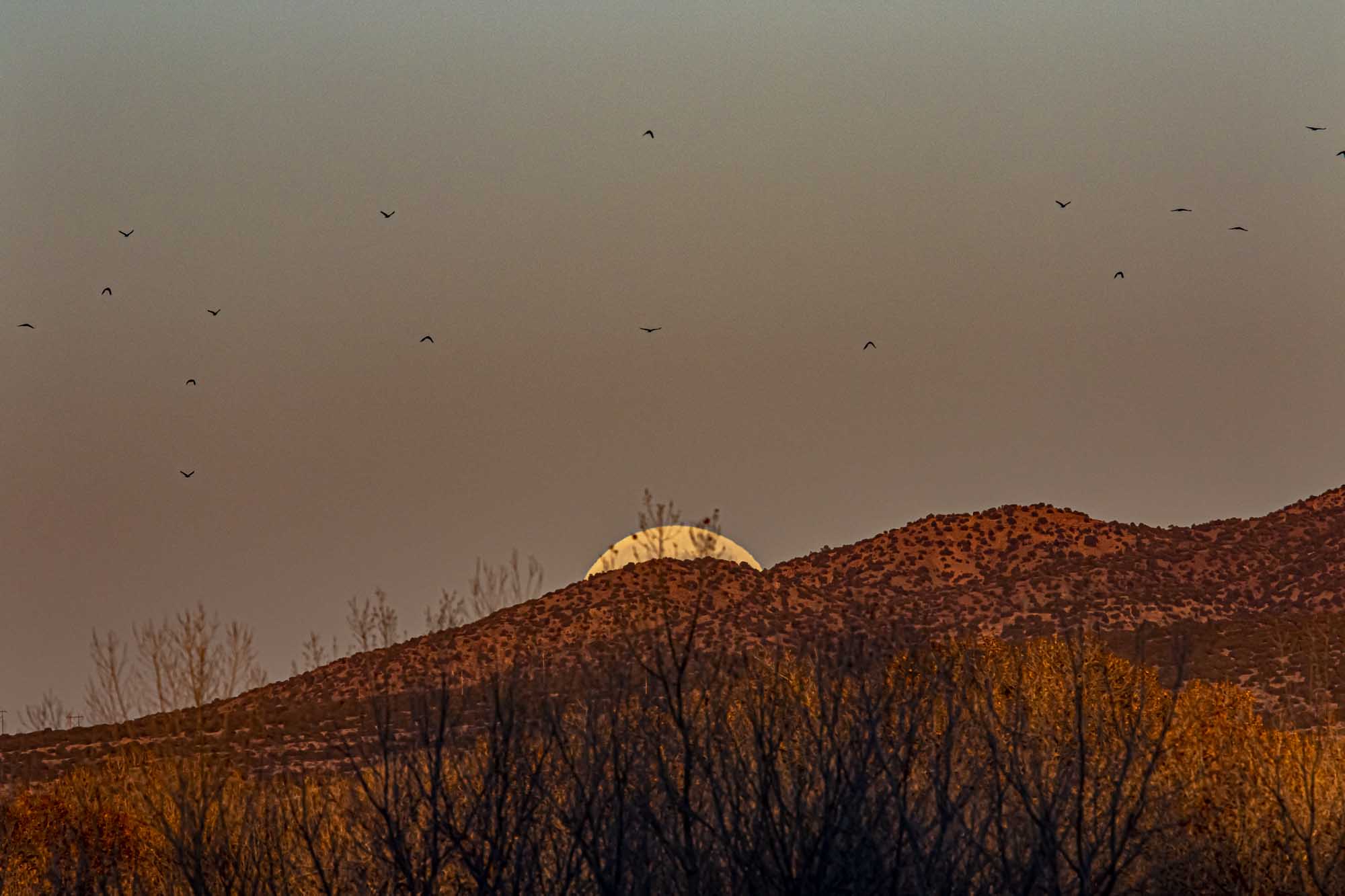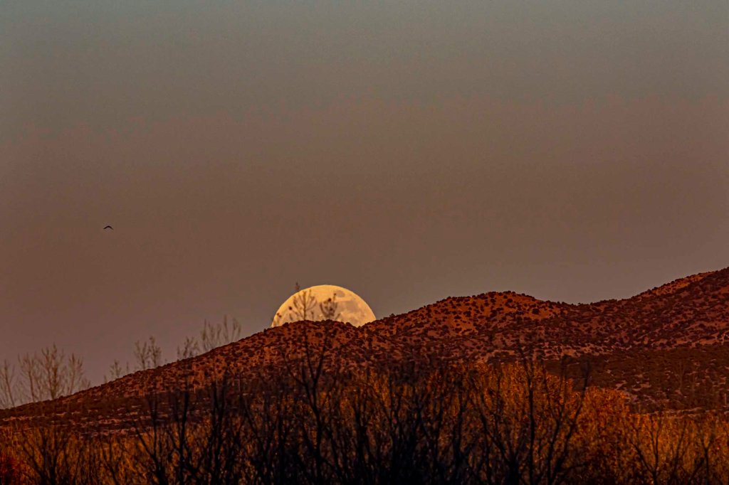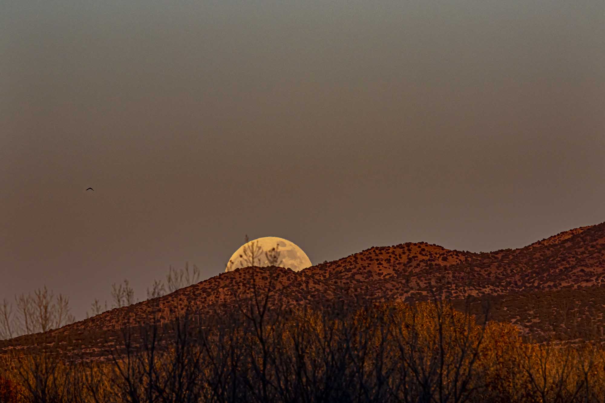 Frost Moon December 18, 2021December 18, 2021 Timothy Price70 Comments The last full moon of 2021 rising over the Sandias. The December full moon has many names, one of which is the Frost Moon. Venus in the cottonwood at Village Pizza. Saturn and Jupiter are to the right.