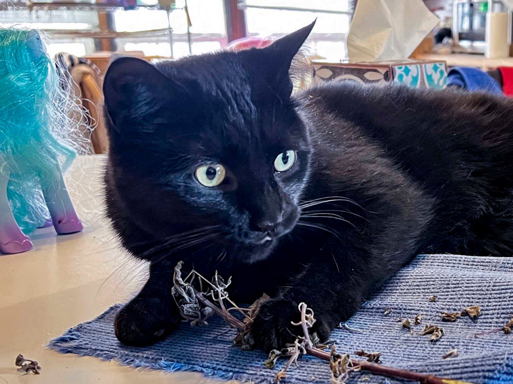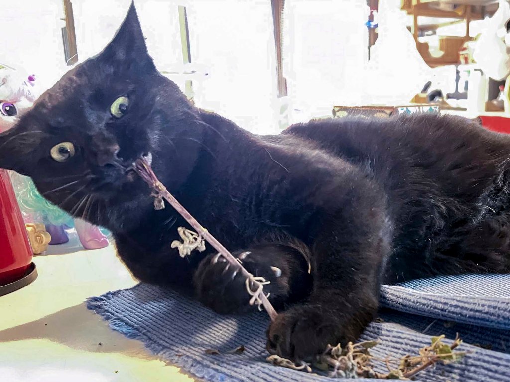 Laurie picked catnip for the kitties while she was out for one of her hourly step goals. Gwendolyn was like a kitty demon eating her sprig of catnip.